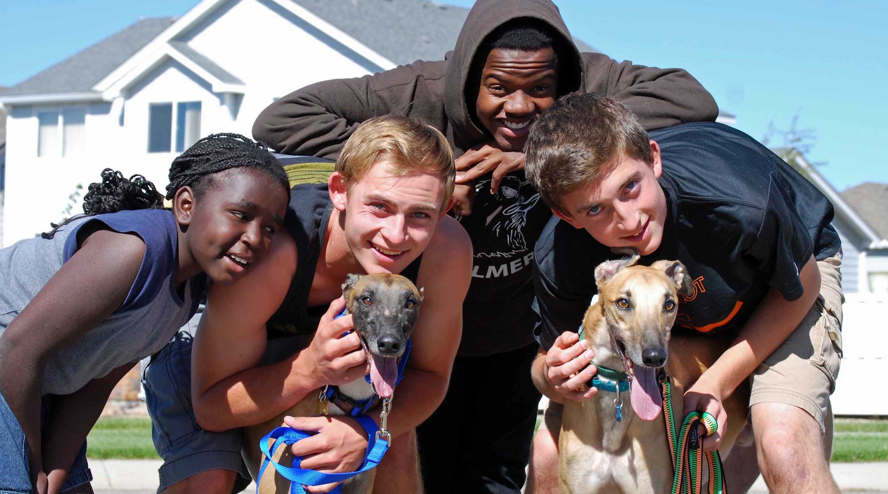 Last week our family drove an hour-and-a-half to a greyhound kennel to pick up a rescue dog to foster for a few weeks before his placement in a permanent home. Felix was born to race; but, for whatever reason, he never made it to the track and retired at the ripe old age of 15-months-old. The first moments of meeting him were warm and sweet. Even our resident greyhound, Cody, along for the ride, seemed to like him. We admired his black face, slinky fawn-colored body with mischievous white socks, and white-tipped tail. We loaded him uneventfully into the back of our vehicle. The rest of us, another dog and six people, folded like pieces of a Rubik’s cube into our places.