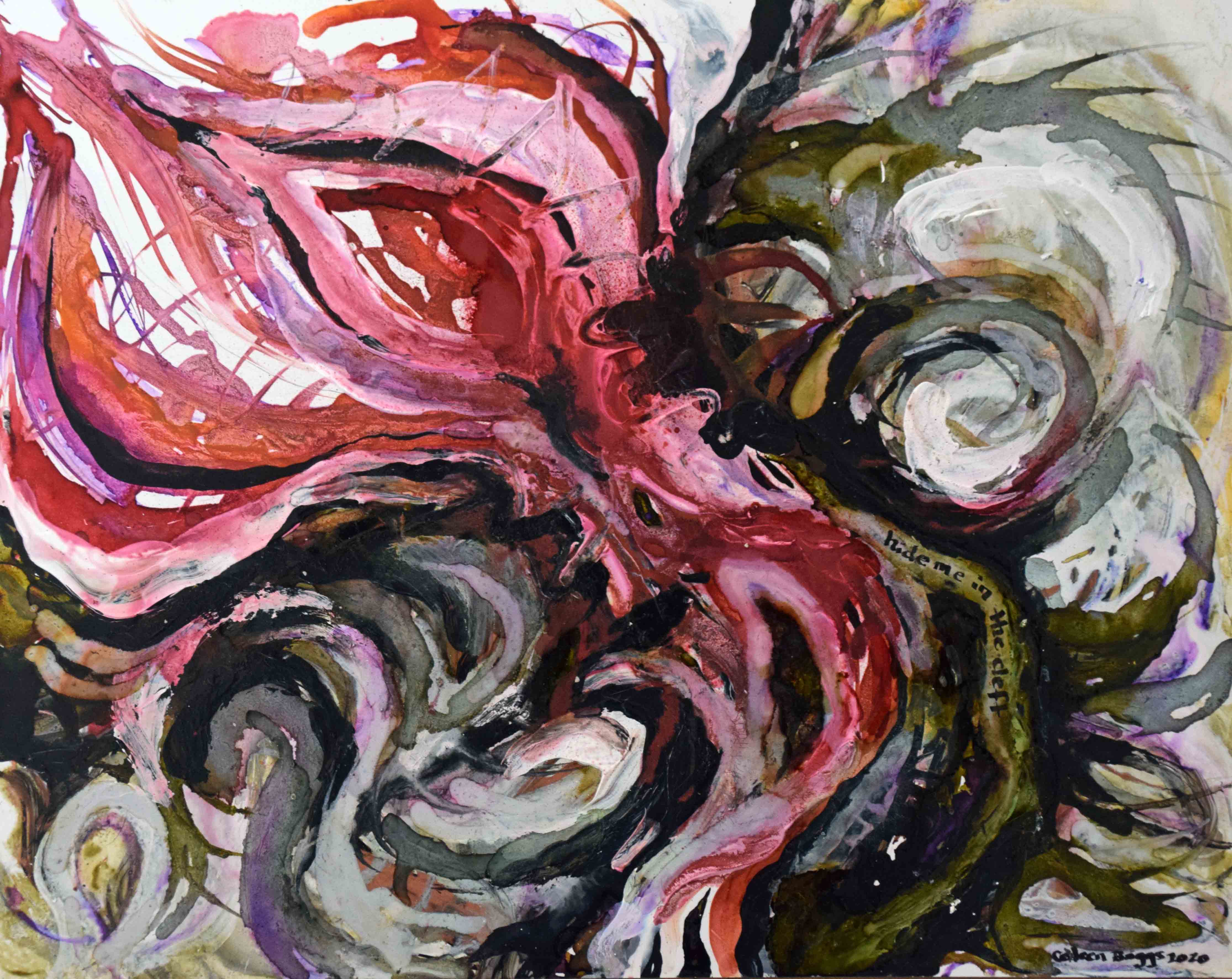 Hide Me in the Cleft; 2020; 11″ x 14″; inks and acrylic.