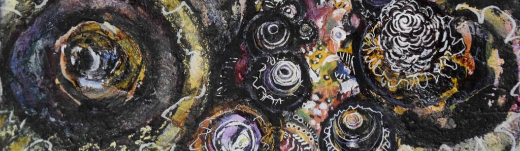 Wandering in a Winter Forest; 2021; 7.5" x 13'; mixed media: ink, watercolor, gouache, oil pastel, graphite. Grasses arc ochre, under frozen sheen, sparkling like the laughter of my grandma, bowing at her feet. I see her there, at a picnic table, her wisdom words still embedded in black, trusting limbs, still reaching under the…Read more Timeless